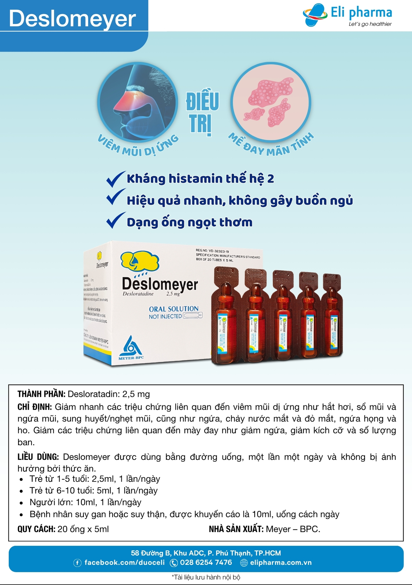 • Deslomeyer được dùng bằng đường uống, một lần một ngày và không bị ảnh hưởng bởi thức ăn.