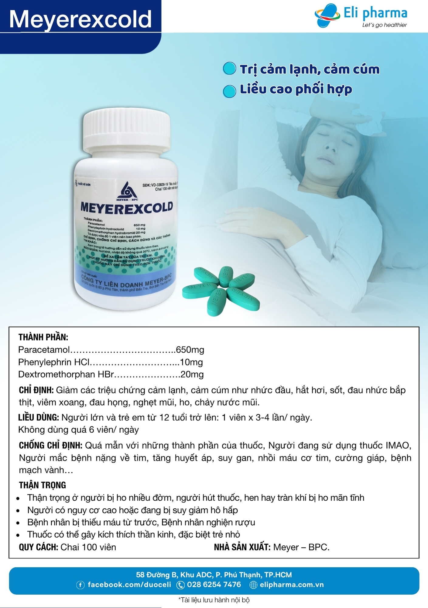 Làm giảm các triệu chứng cảm lạnh, cảm cúm như nhức đầu, hắt hơi, sốt, đau nhức bắp thịt, viêm xoang, đau họng. nghẹt mũi, ho, chảy nước mũi.
