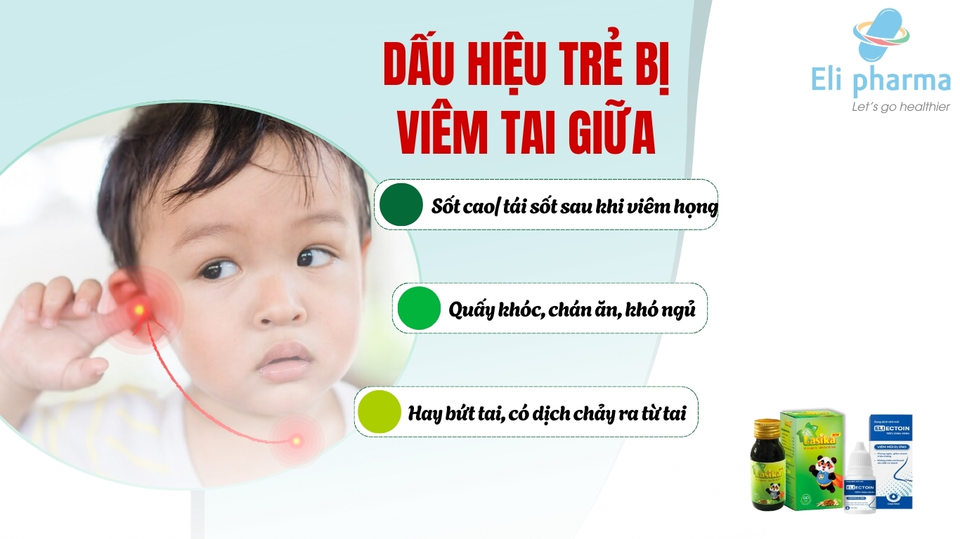 Cùng với hệ miễn dịch chưa hoàn thiện, nên dù chỉ viêm họng nhẹ, tai giữa vẫn có nguy cơ bị ảnh hưởng. Nếu thấy 2–3 dấu hiệu sau đây xuất hiện cùng lúc, ba mẹ nên đưa trẻ đi khám sớm: